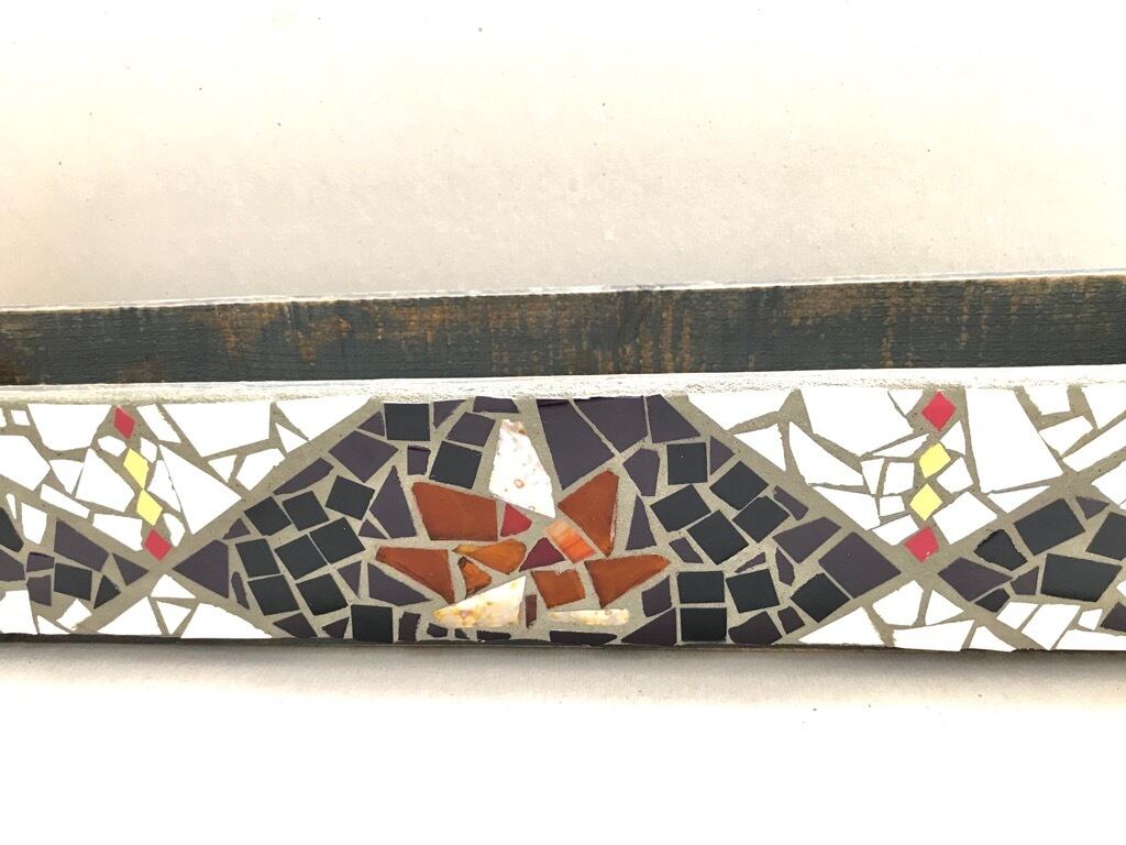 オリジナルのモザイクタイルを施したシャビーウッドボックスです。