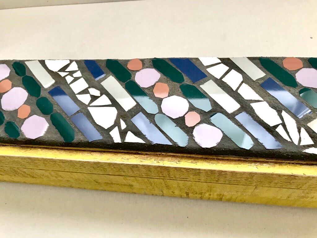 オリジナルのモザイクタイルを施したシャビーウッドボックスです。