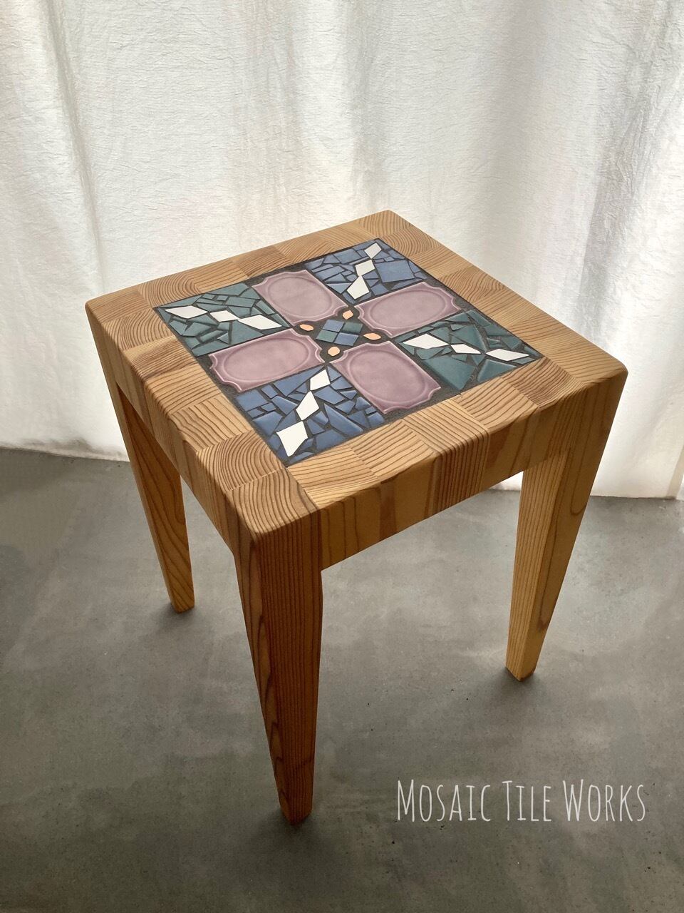 落ち着いたブラウンの目地で全体のカラーをまとめた一点のみの特別なサイドテーブルです。